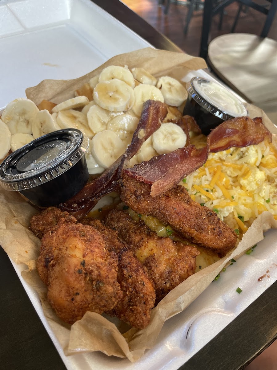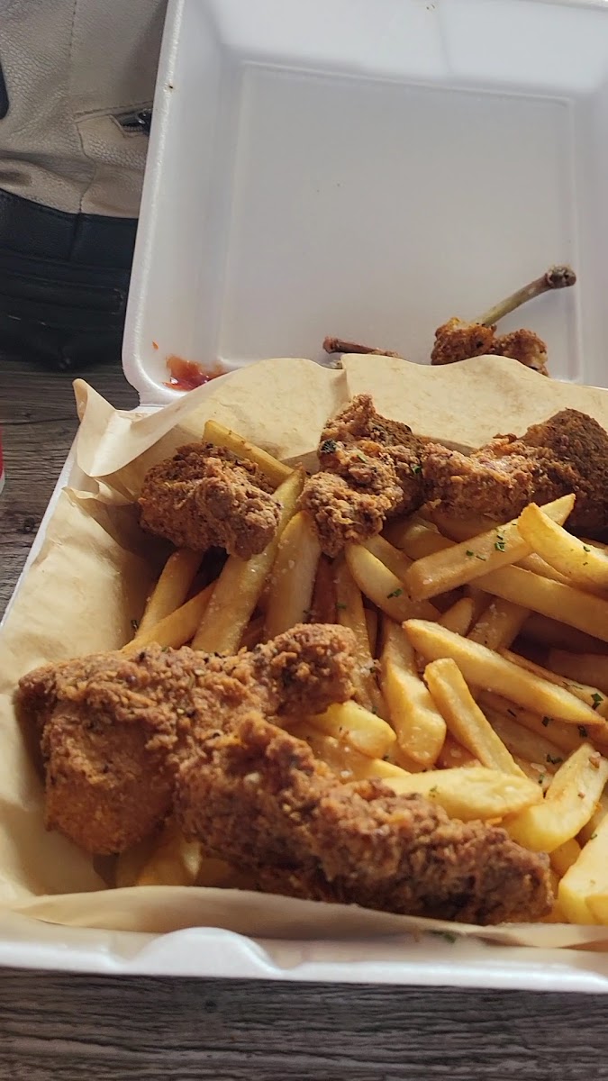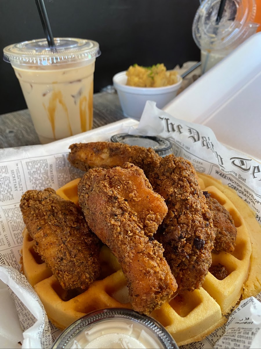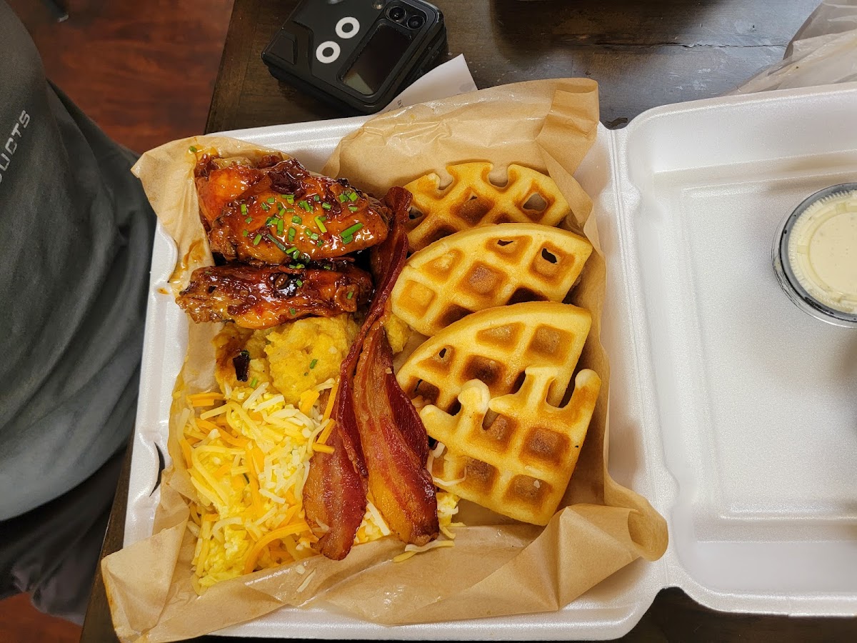 Visitors who enjoy hearty portions will appreciate the generous wing platters and dishes like the Winner Chicken Dinner, which pairs fried wings with cornbread waffles and rich, smothered potatoes. The food clearly travels well too, making takeout a solid option without sacrificing texture or flavor, which fits the area’s mix of on-the-go locals and those seeking a casual sit-down meal.